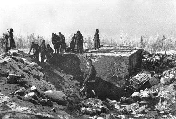 Захваченные бетонированные артиллерийские укрепления в районе высоты 65,5. Хотиненский УР.