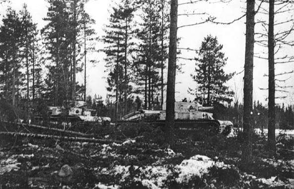 Танки выходят в атаку в районе укрепленного района Хотинен